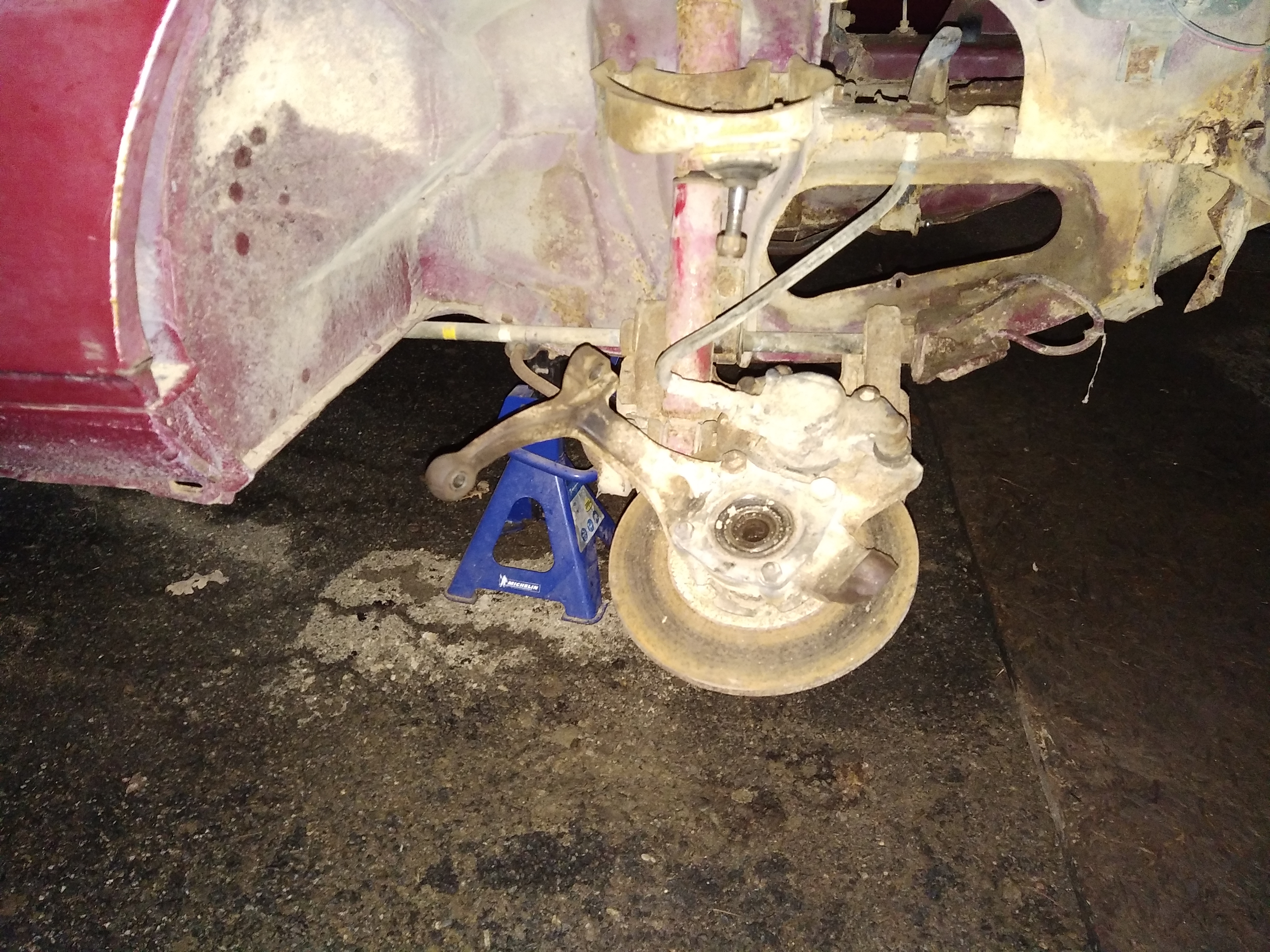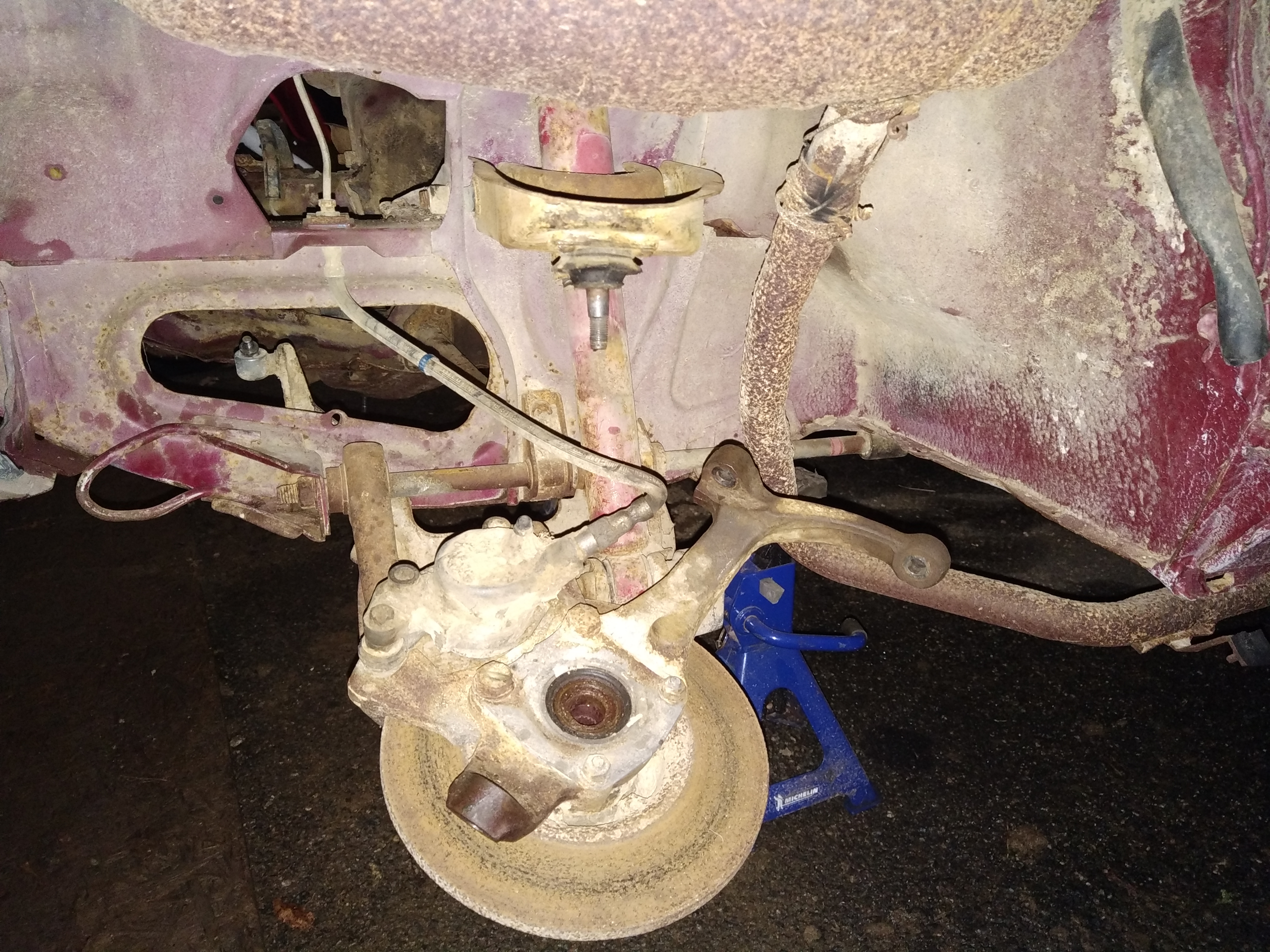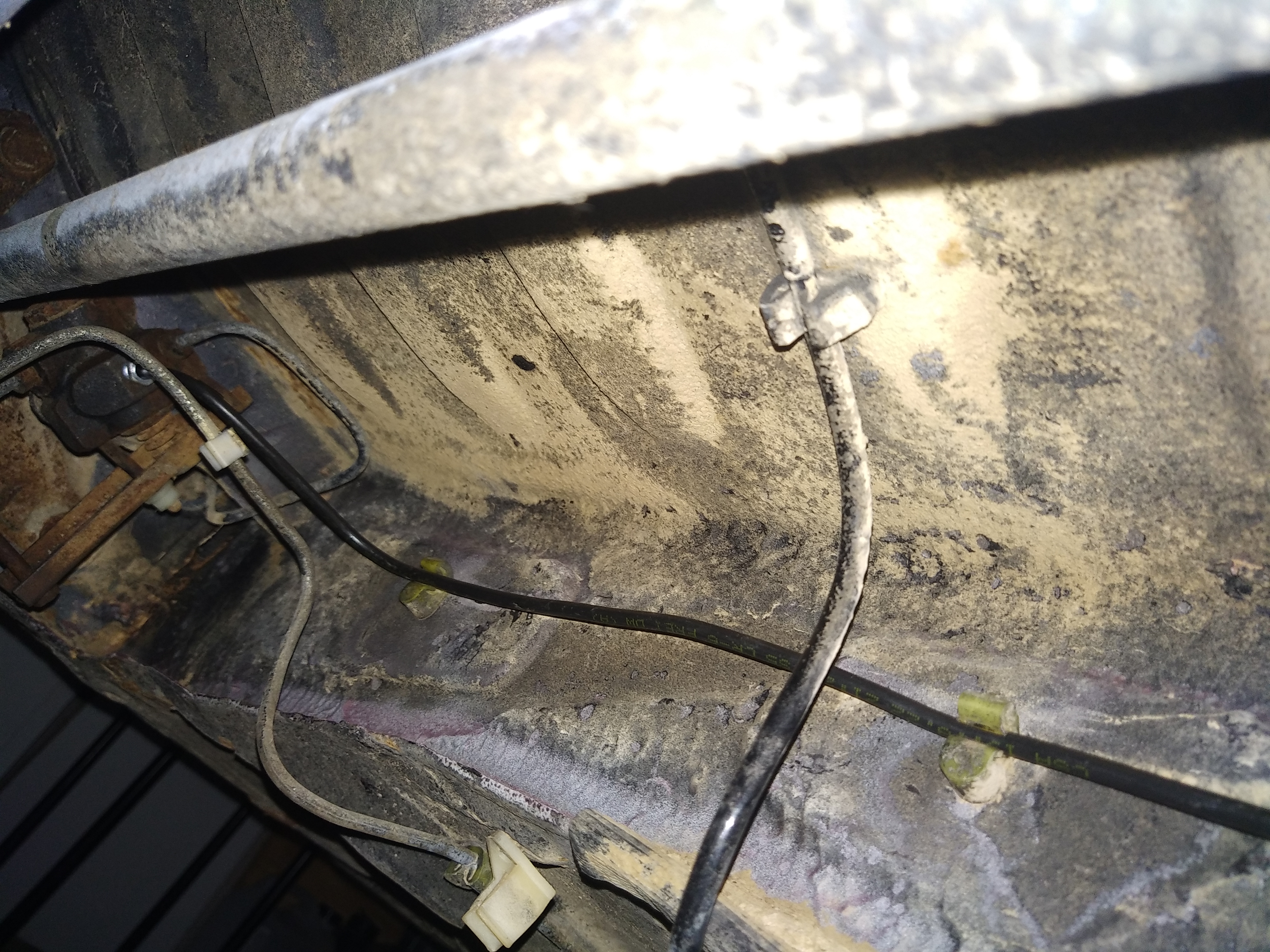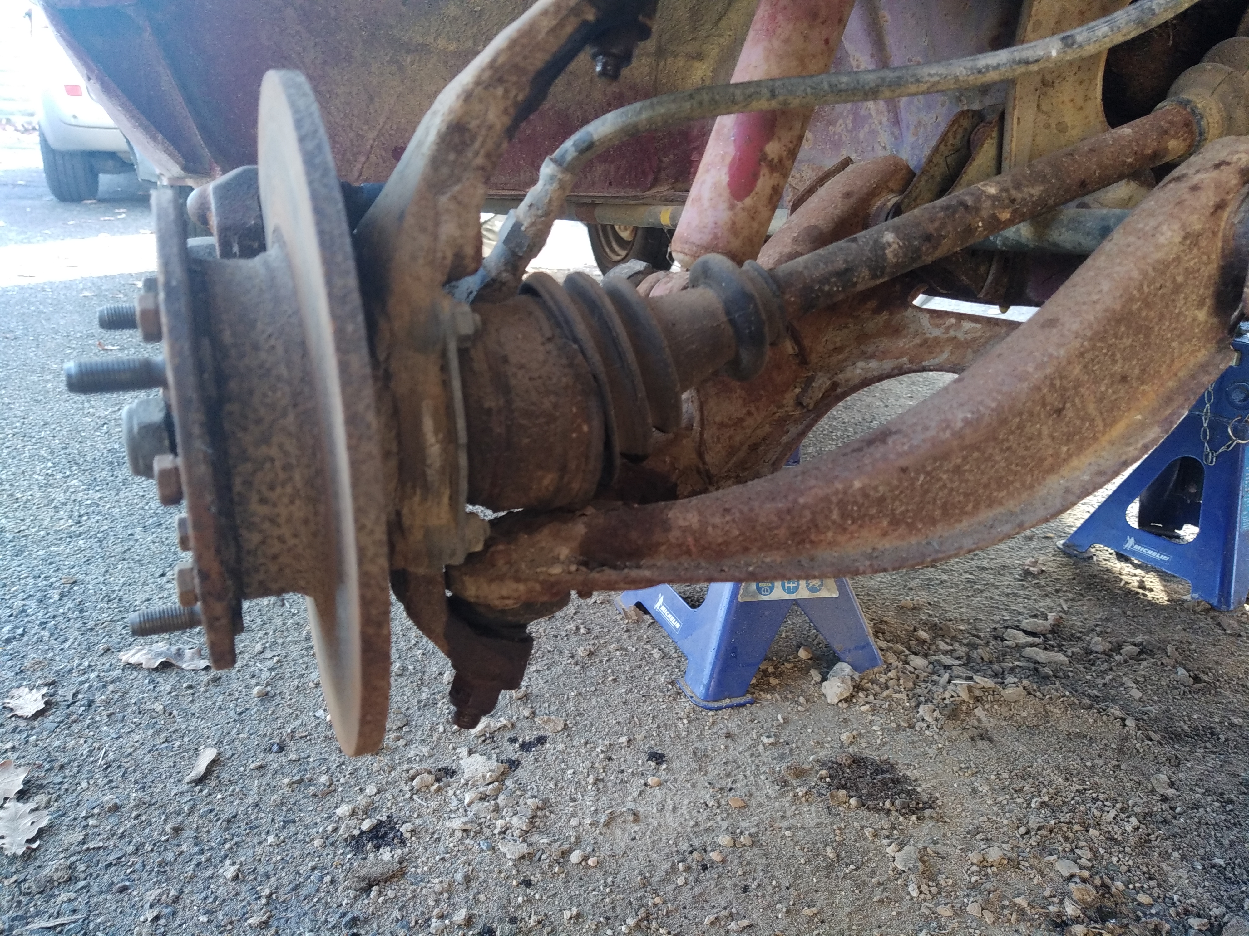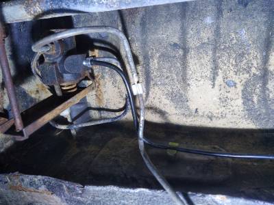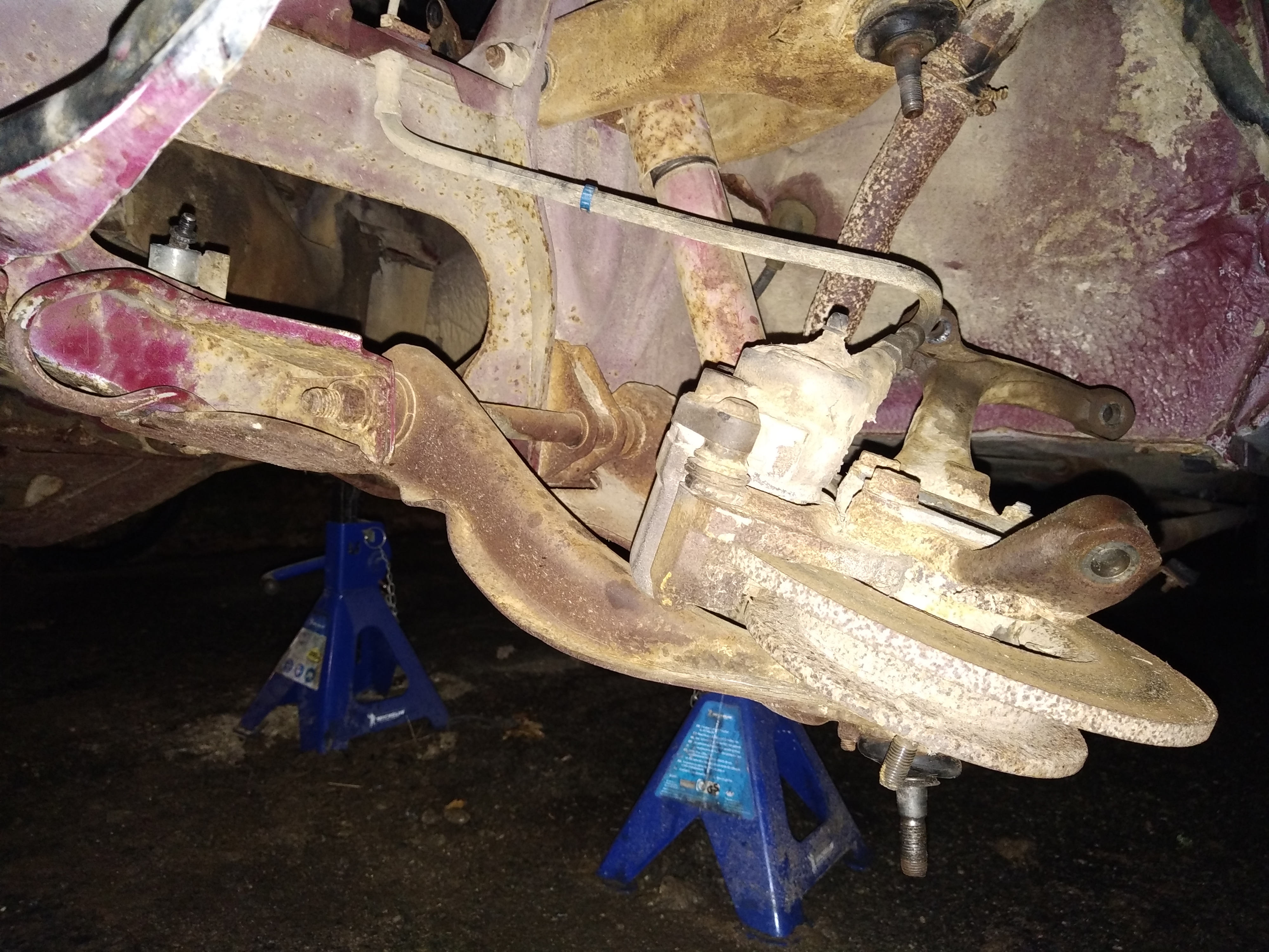 Un des tuyaux rigides de freinage a dû être coupé car il ne se démontait pas :