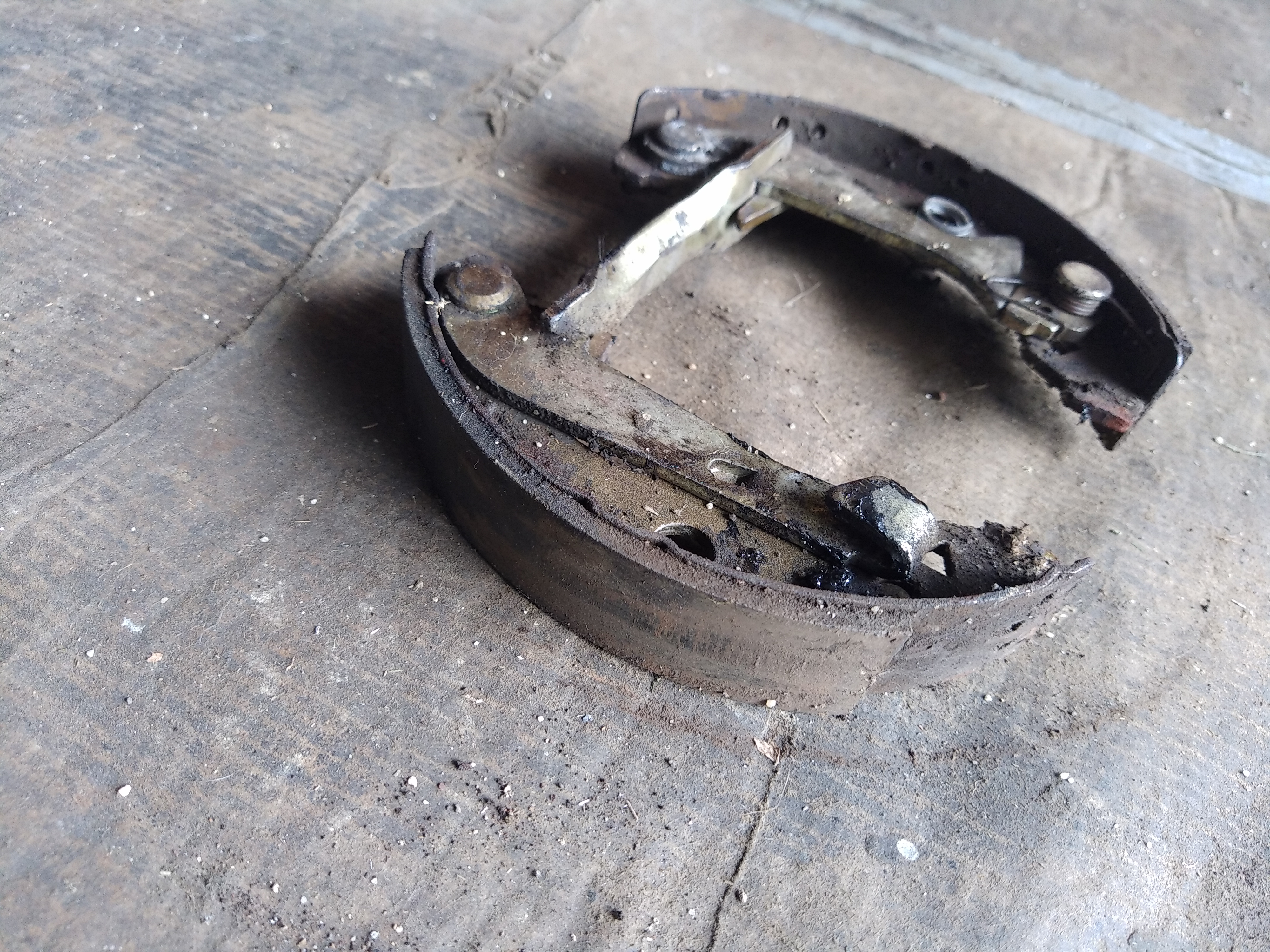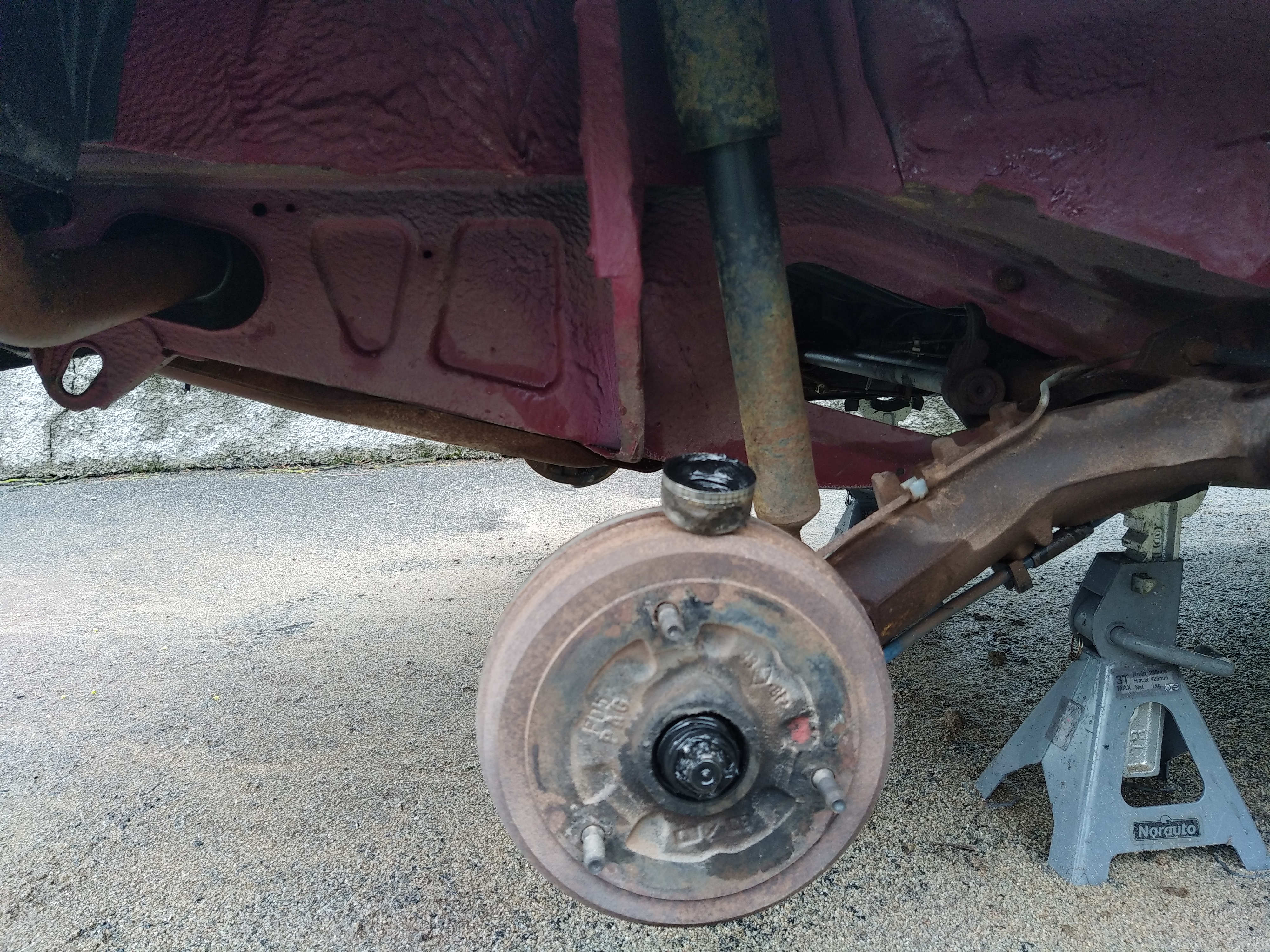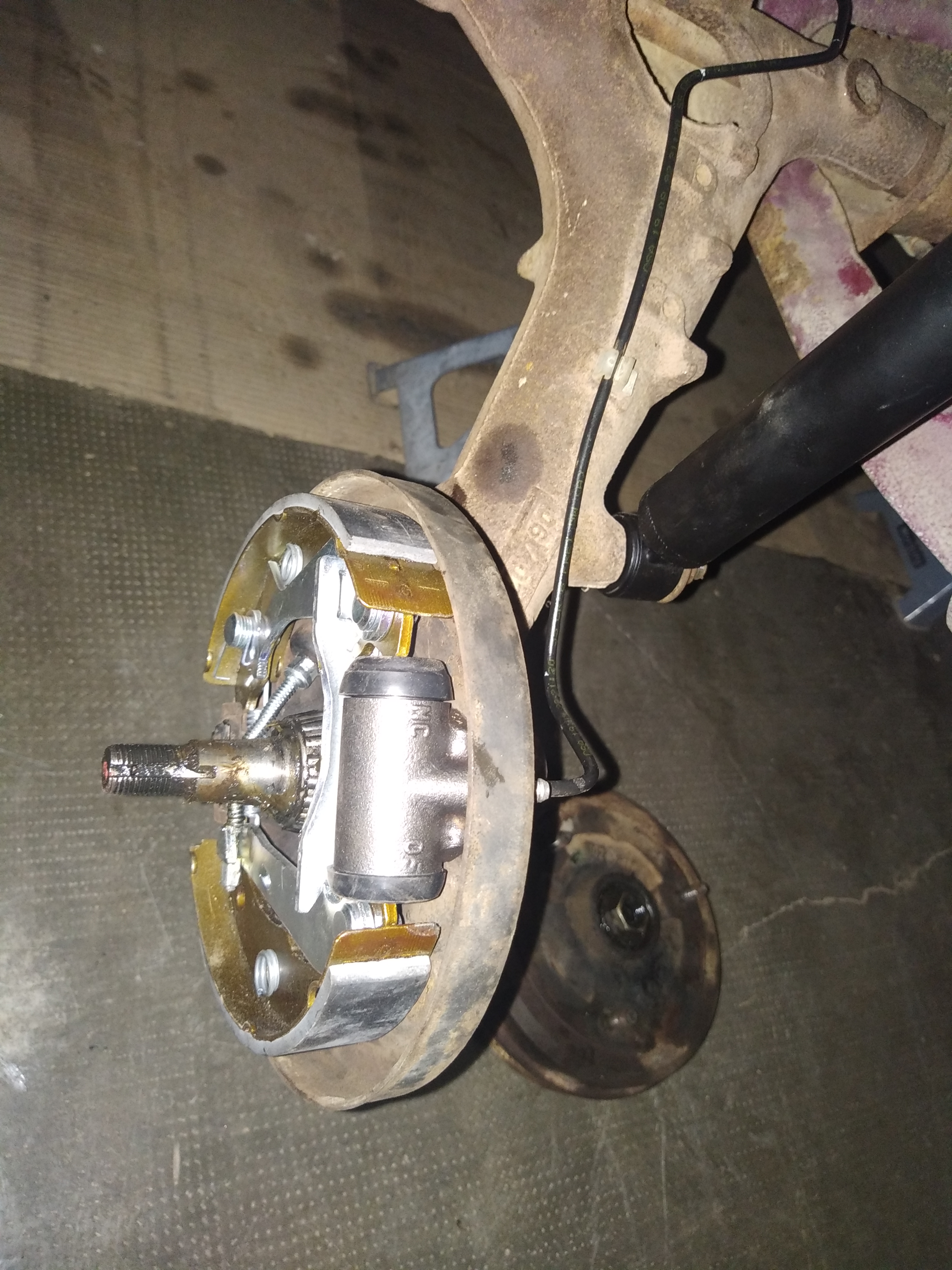Les systèmes de freinage ont été remis à neuf. Lors de la remise en place des tambours, les nouveaux câbles de frein à main étant moins détendus généraient une tension sur les mâchoires.