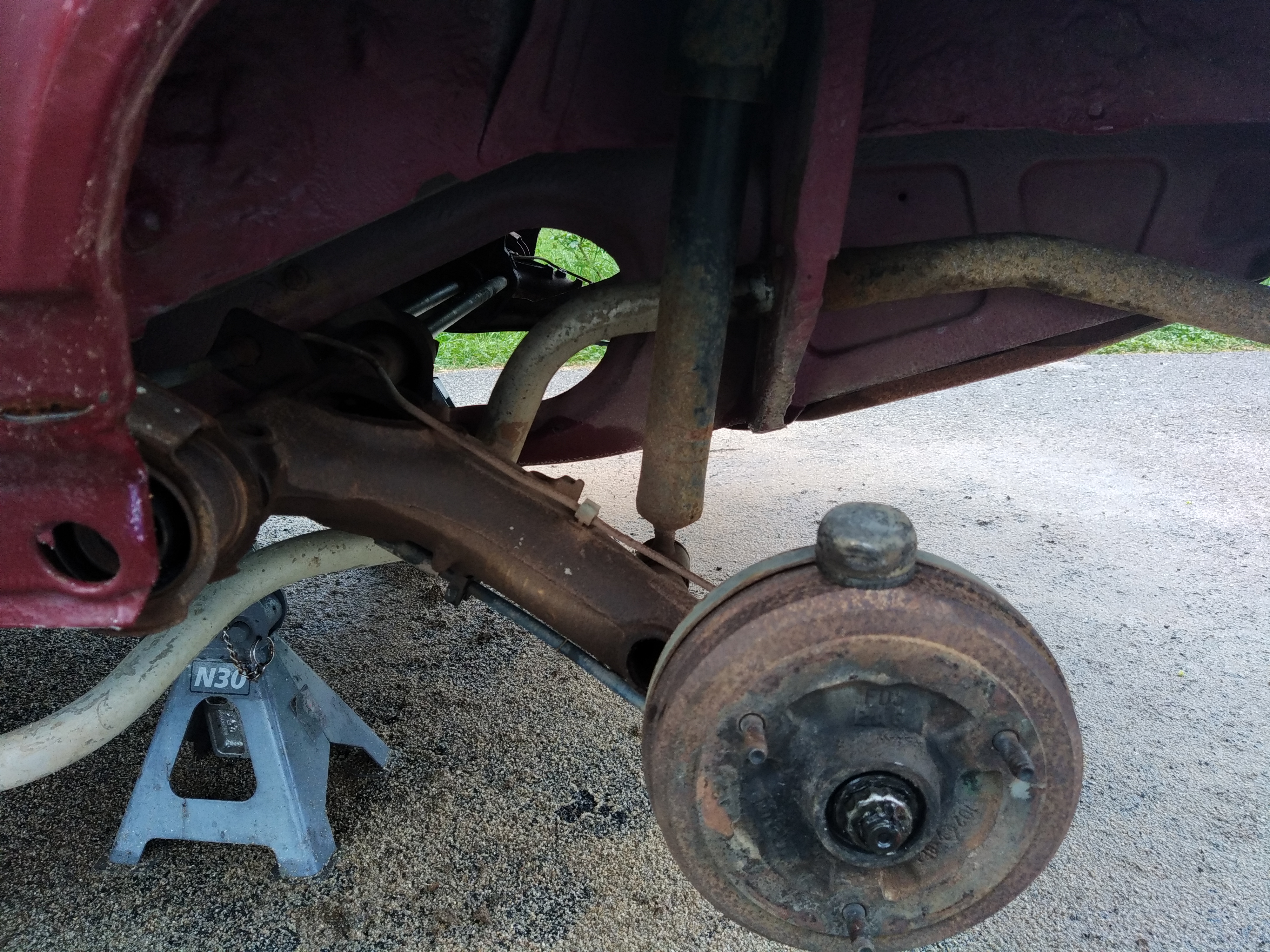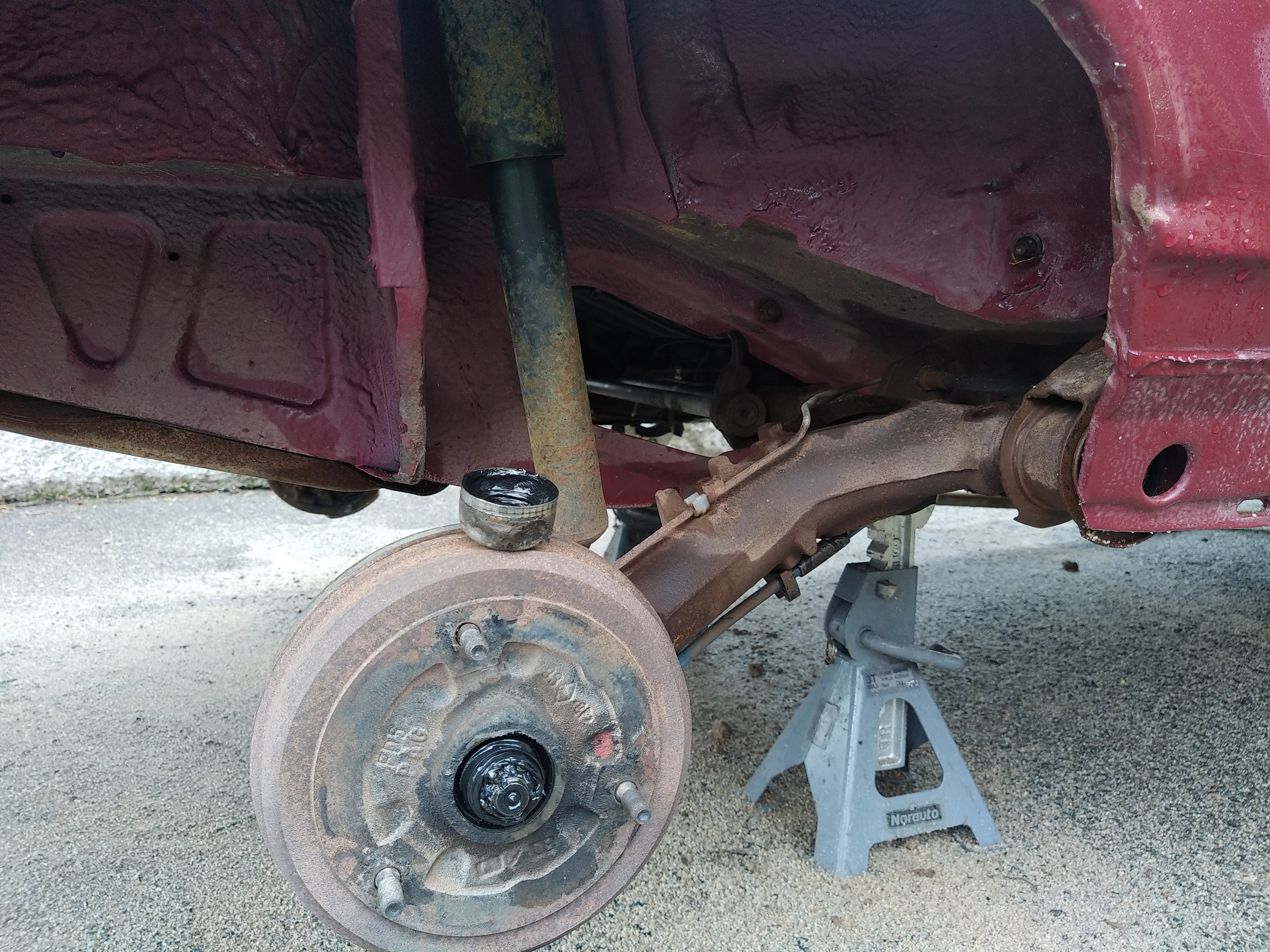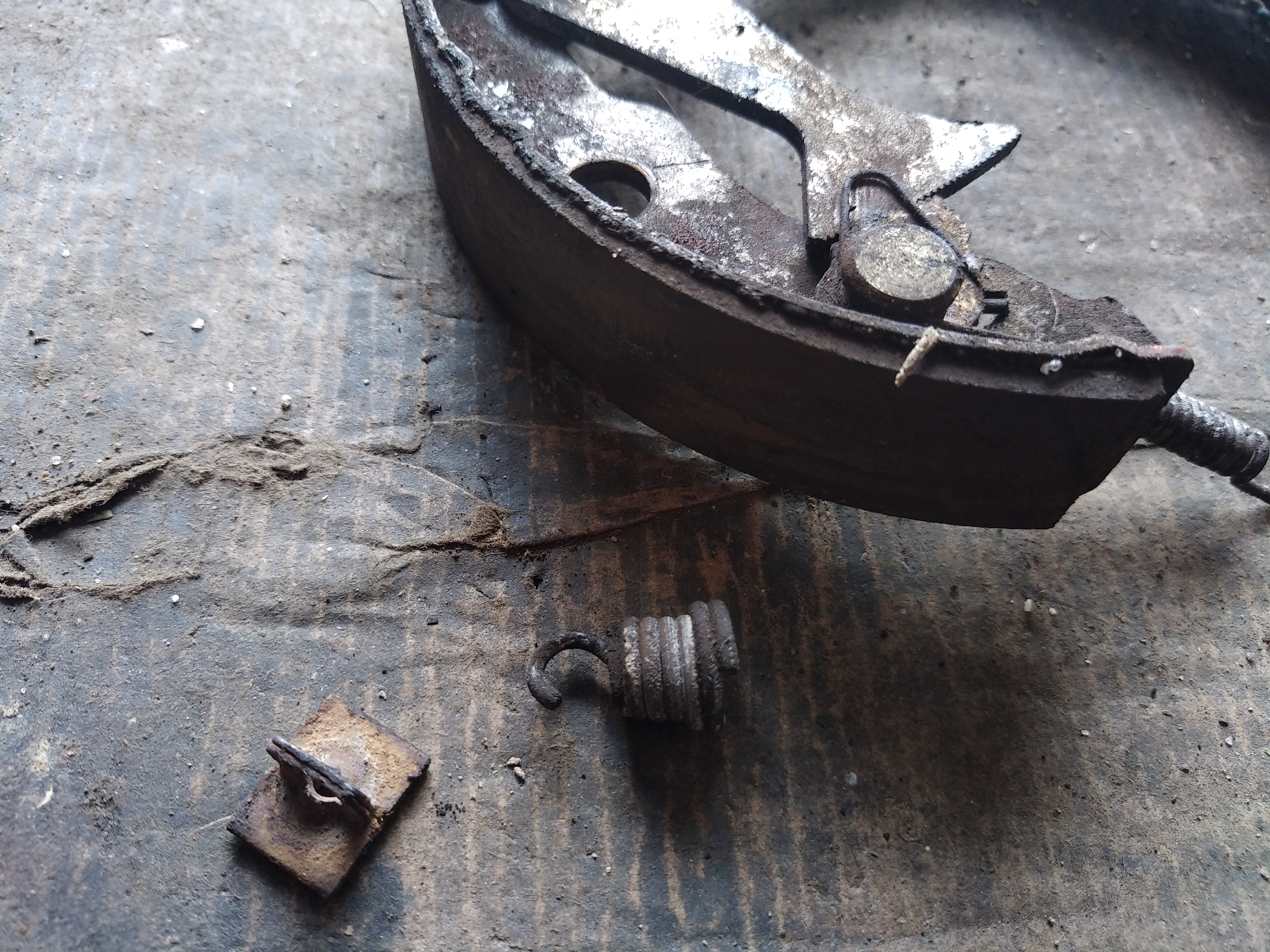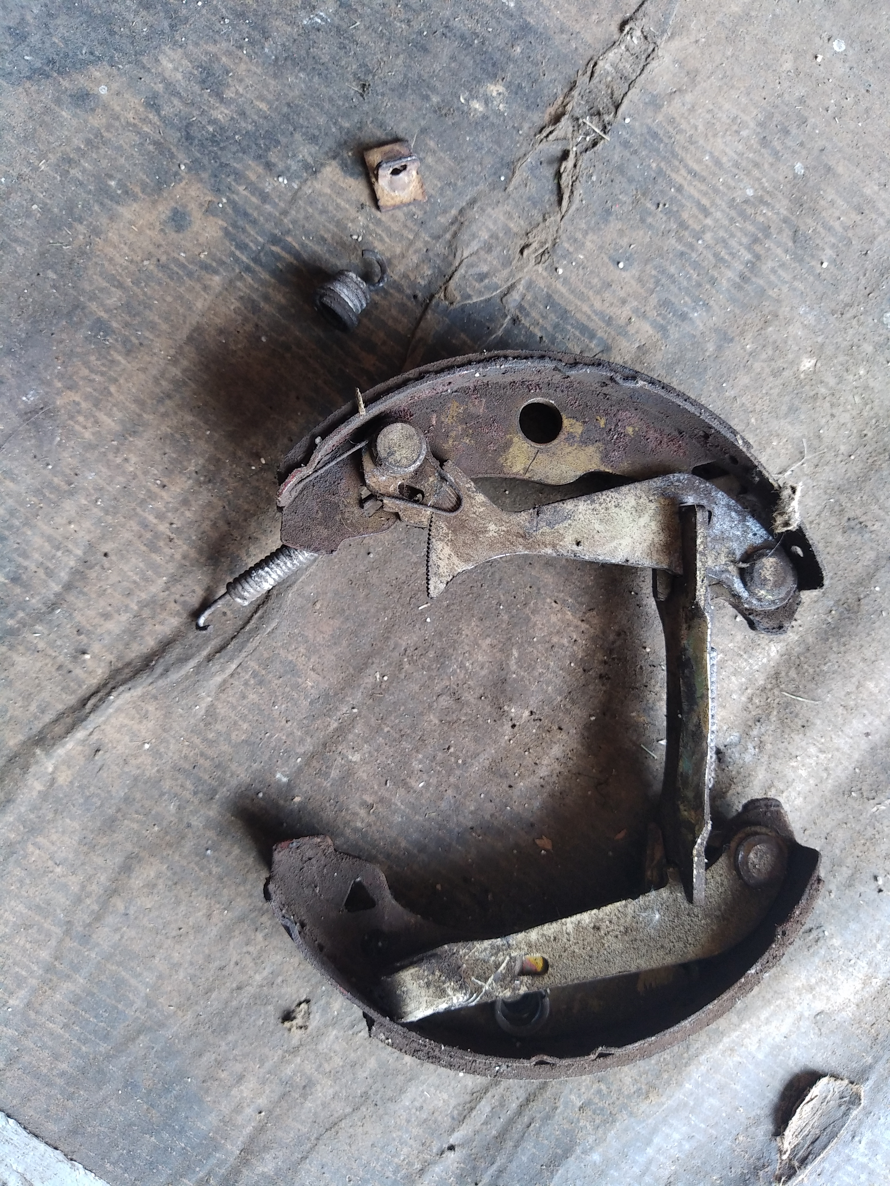 Les systèmes de freinage ont été remis à neuf. Lors de la remise en place des tambours, les nouveaux câbles de frein à main étant moins détendus généraient une tension sur les mâchoires.