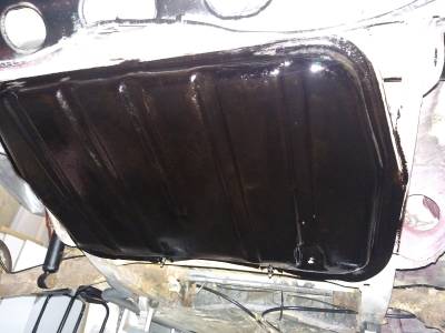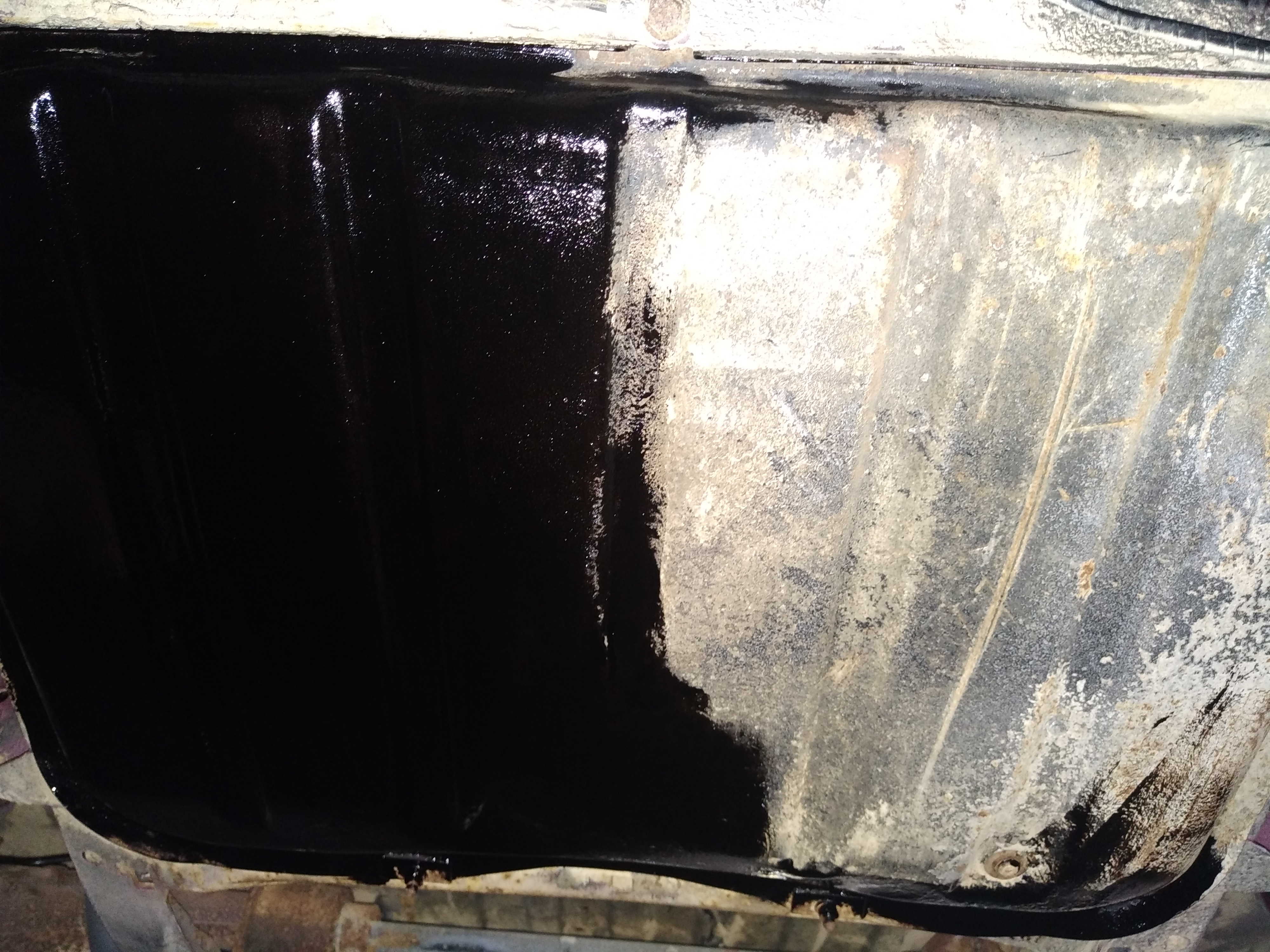 Application de la peinture bitumée sur les soudures du support batterie et le réservoir